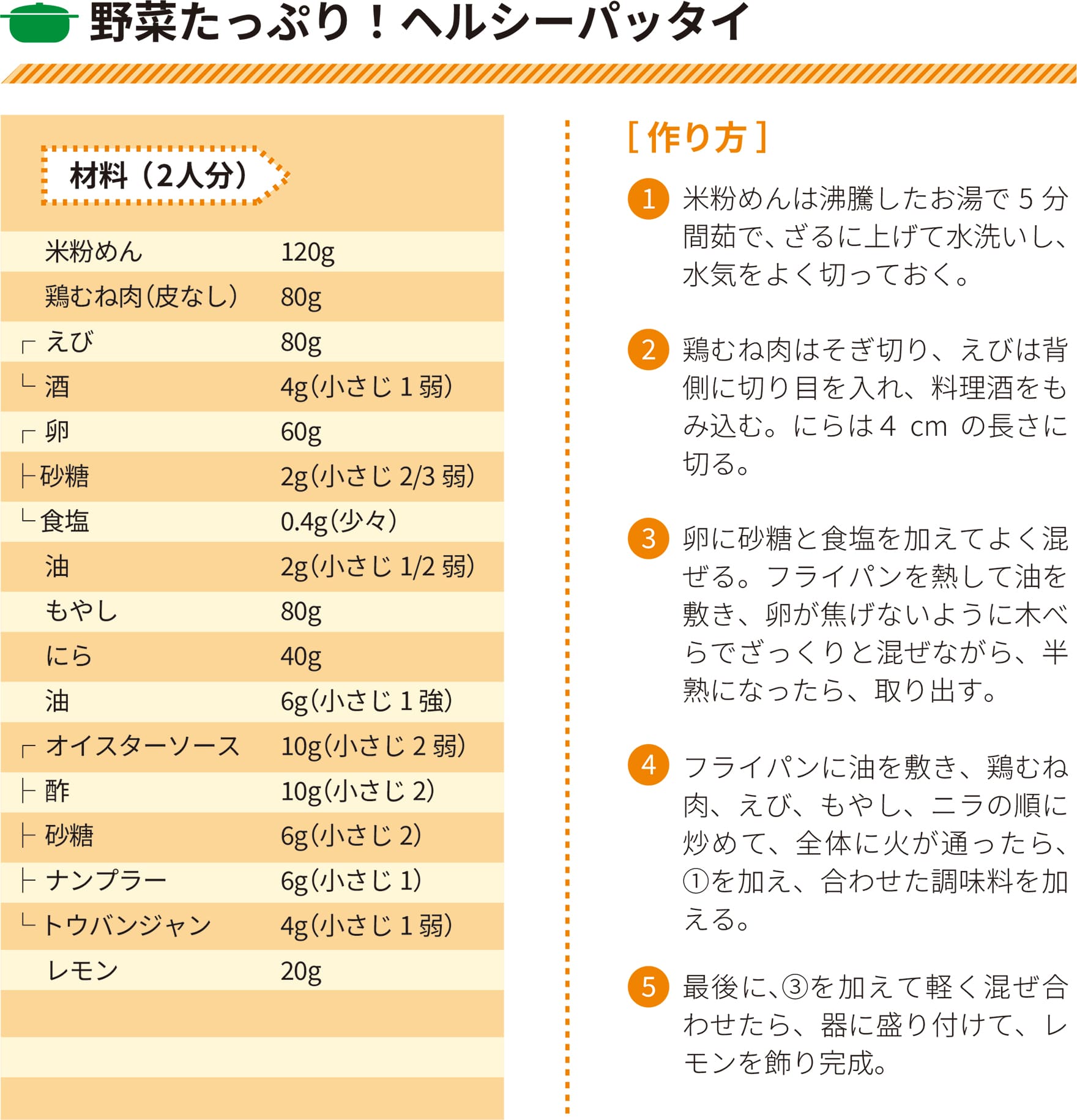 『パッタイ』はタイを代表する麺料理で、第二次世界大戦の頃、タイでは米が不足していたため、米粉を使った麺を使った料理として広まったと言われています。また、当時の首相が『国を元気にする料理』として推奨したことから、タイの国民食となったそうです。パッタイは米粉の麺とえびや卵、たっぷりの野菜を炒め、タイの魚醤『ナンプラー』を加え、甘酸っぱく仕上げます。ナンプラーはエスニック料理には定番の調味料で、独特の風味があり、ほんの少し加えることで、本格的な味わいに仕上がります。さらに、レモンを絞ると、爽やかに、かつ、さっぱりとお召し上がりいただけます。